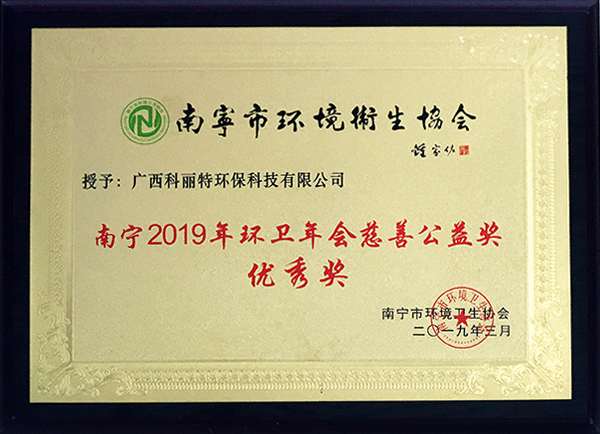 南寧2019年環(huán)衛(wèi)年會慈善公益獎優(yōu)秀獎